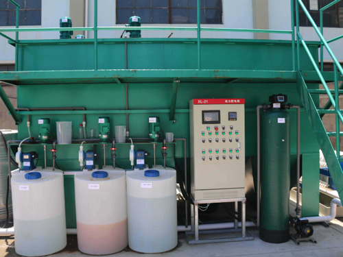 4、在鈣式除磷系統(tǒng)中,加入氫氧化與氫氧化鈣(其配比經(jīng)調(diào)式確定,可先按1:1比例進(jìn)行調(diào)試),其PH值控制范圍為9—11(具體控制值經(jīng)調(diào)試 確定),而后廢水進(jìn)入混凝沉淀系統(tǒng);